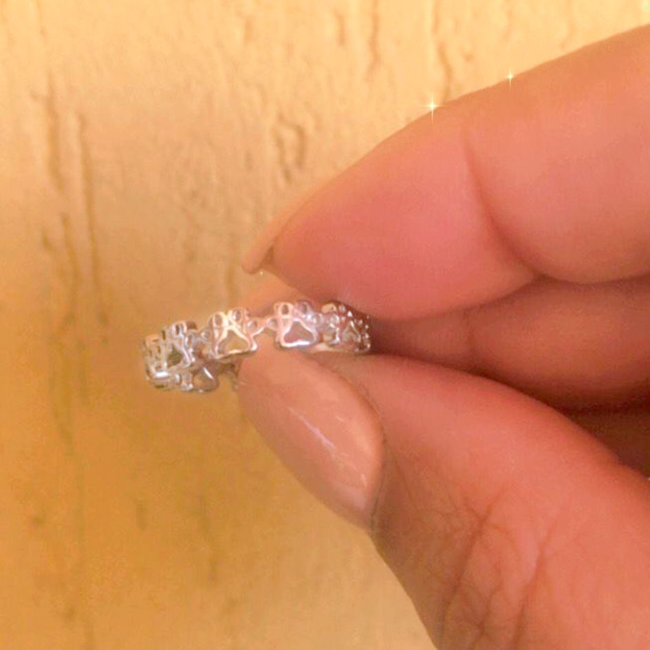 ANEL CORAÇÃO COM PATA ZIRCÔNIA - RÓDIO BRANCO