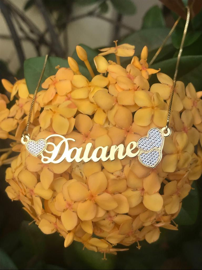 COLAR BIPARTIDO COM NOME PERSONALIZADO E 2 CORAÇÕES